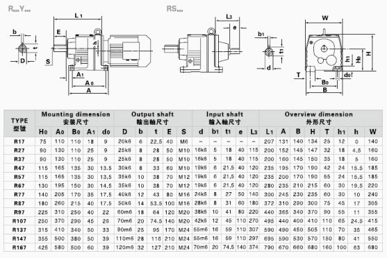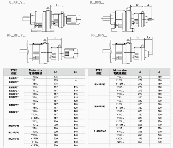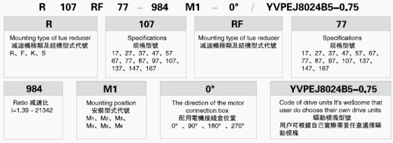 R…F:底腳法蘭安裝 RM: 法蘭安裝帶加長軸承箱
